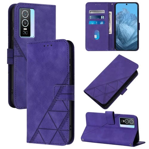 Para Vivo Y76 5G Crossbody Funda de Cuero con Tapa En Relieve 3D (Púrpura)
