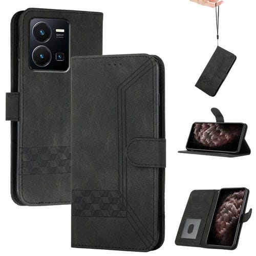 Para Vivo Y77E 5G Cubic Skin Feel Funda de Cuero con Tapa para Teléfono (Negro)
