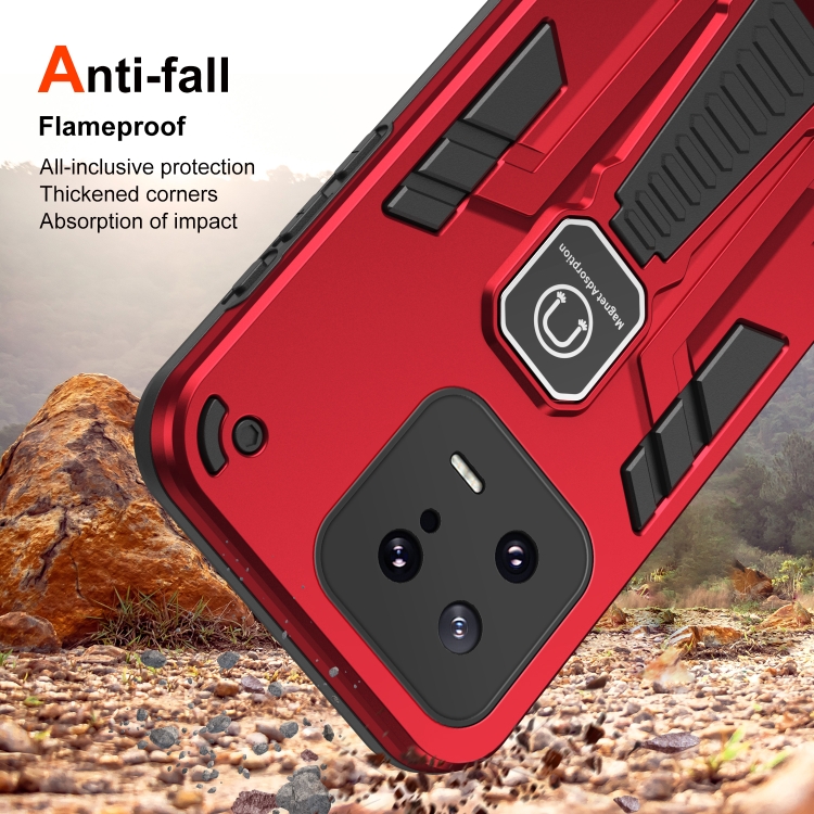 Para Xiaomi 13 2 En 1 Funda para Teléfono con Soporte a Prueba de Golpes (Rojo)
