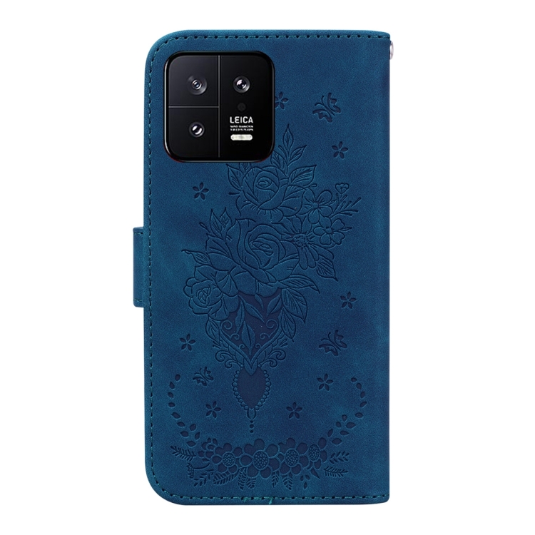 Para Xiaomi 13 5G Butterfly Rose Estuche para Teléfono de Cuero En Relieve (Azul)
