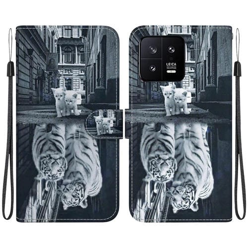 Para Xiaomi 13 5G Funda de Teléfono de Cuero con Dibujo Coloreado con Textura de Cristal (Reflejo de Tigre Gato)