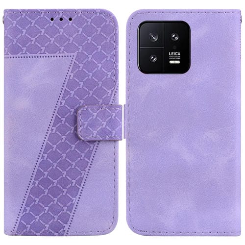 Para Xiaomi 13 5G Funda de Teléfono de Cuero En Relieve En Forma de 7 (Púrpura)