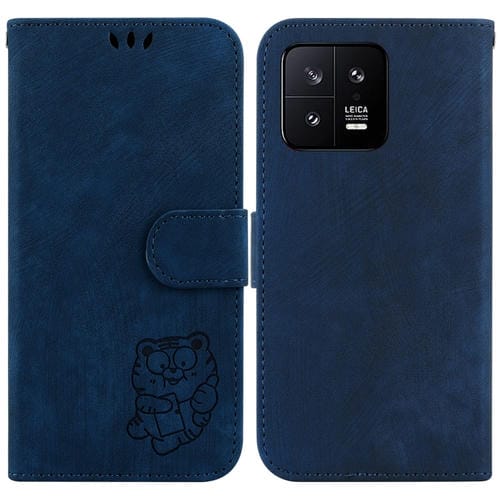 Para Xiaomi 13 5G Little Tiger Funda de Cuero En Relieve para Teléfono (Azul Oscuro)