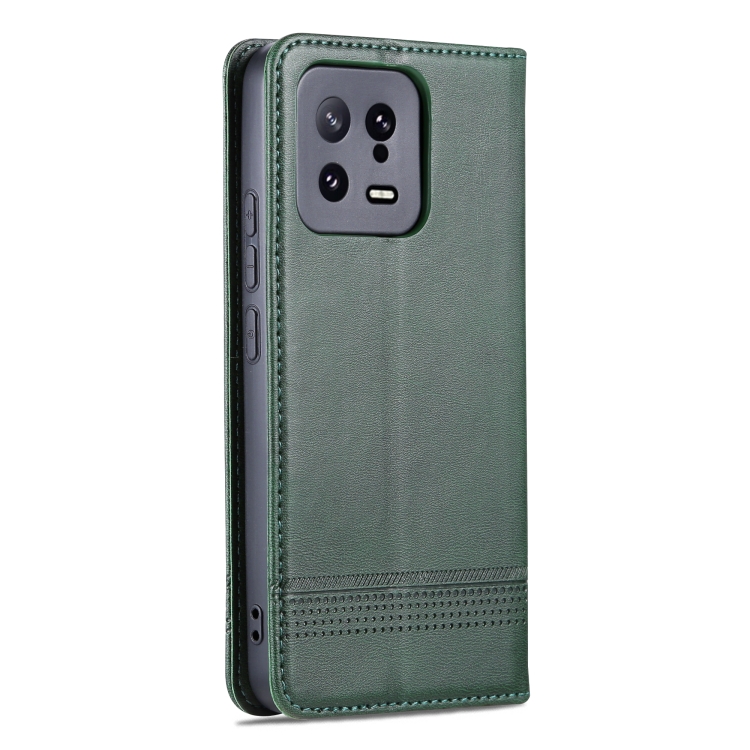 Para Xiaomi 13 Azns Funda de Teléfono con Tapa de Cuero con Textura de Becerro Magnético (Verde Oscuro)