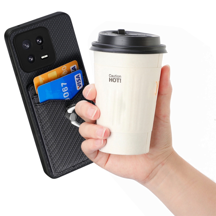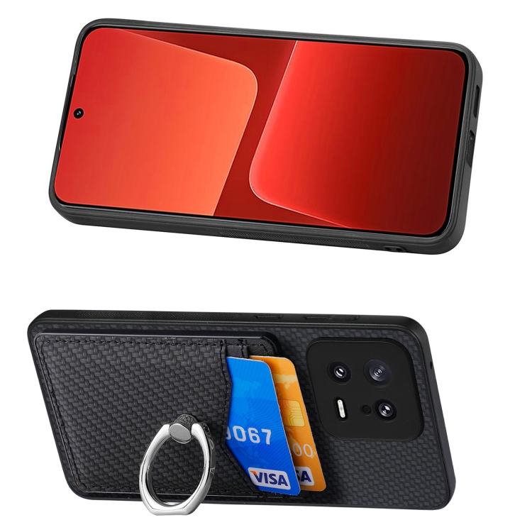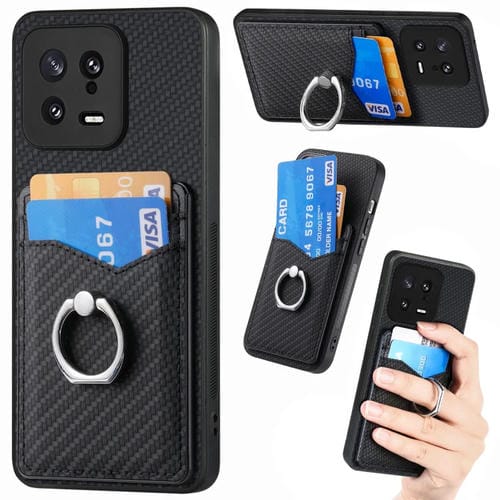 Para Xiaomi 13 Carbon Fiber Card Wallet Ring Holder Phone Case (Negro)