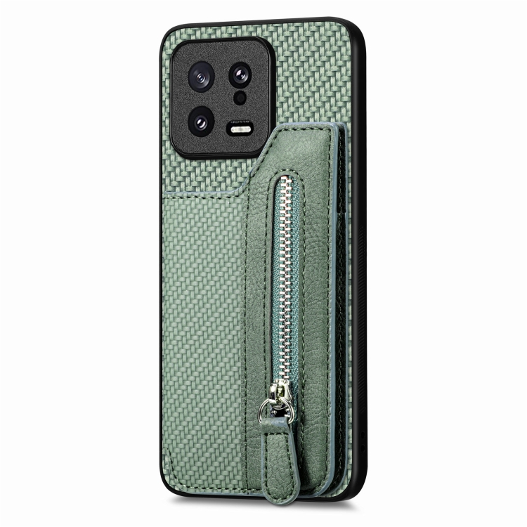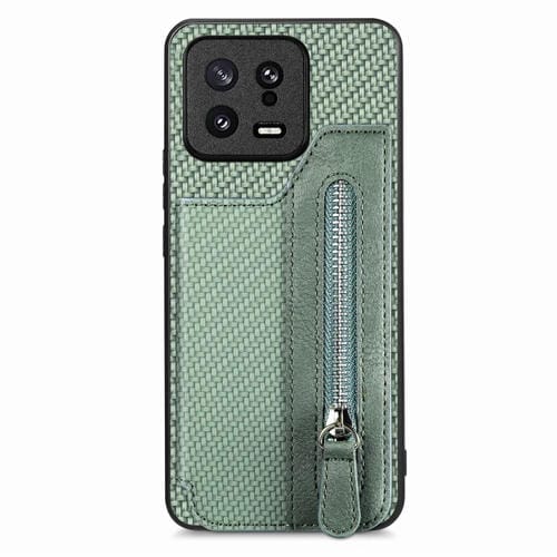 Para Xiaomi 13 Carbon Fiber Flip Zipper Wallet Phone Case (Verde)