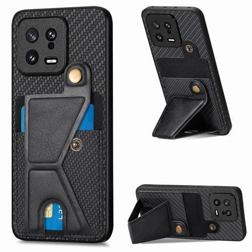 Para Xiaomi 13 Carbon Fiber Wallet Flip Card Holder Phone Case (Negro)