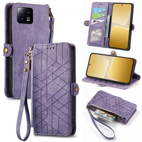 Para Xiaomi 13 Cartera con Cremallera Geométrica Caja de Cuero con Hebilla Lateral para Teléfono (Púrpura)