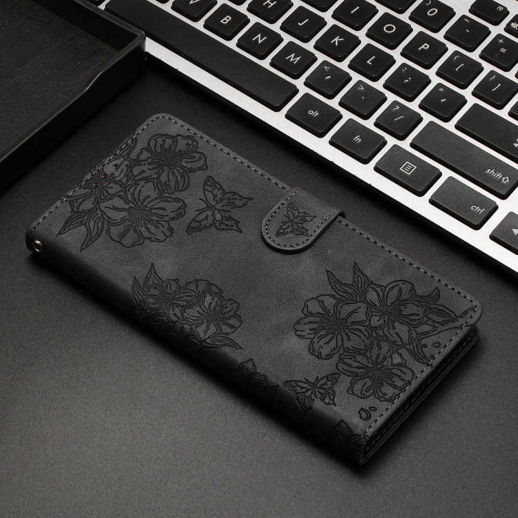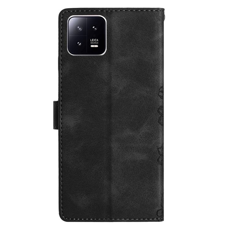 Para Xiaomi 13 Cherry Blossom Butterfly Skin Feel Funda para Teléfono de Pu En Relieve (Negro)