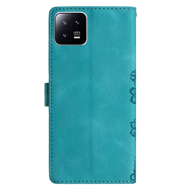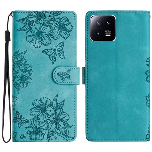 Para Xiaomi 13 Cherry Blossom Butterfly Skin Feel Funda para Teléfono de Pu En Relieve (Verde)