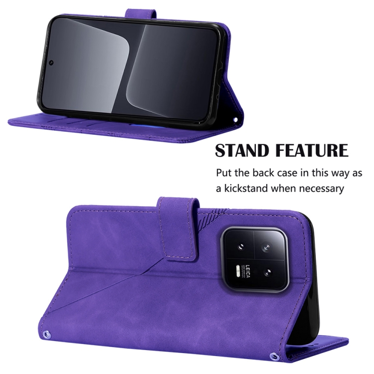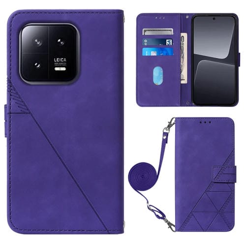 Para Xiaomi 13 Crossbody 3D Funda de Cuero con Tapa En Relieve para Teléfono (Púrpura)