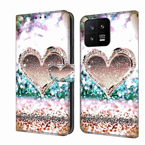 Para Xiaomi 13 Crystal 3D Funda Protectora de Cuero para Teléfono a Prueba de Golpes (Corazón de Diamante Rosa)