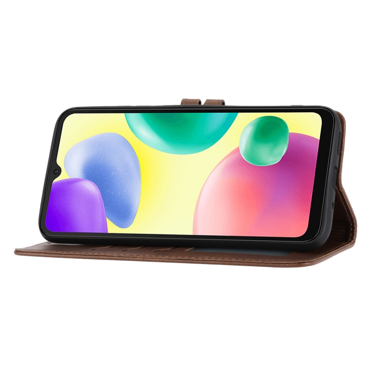 Para Xiaomi 13 En Relieve Happy Cat Pattern Flip Funda de Cuero para Teléfono (Marrón)