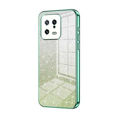 Para Xiaomi 13 Estuche para Teléfono Galvanizado con Polvo de Brillo Degradado (Verde)