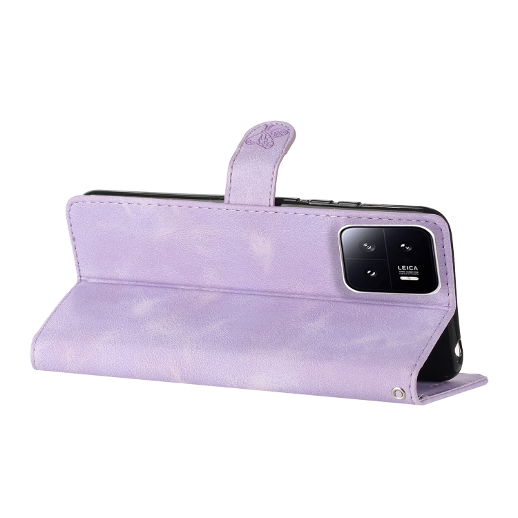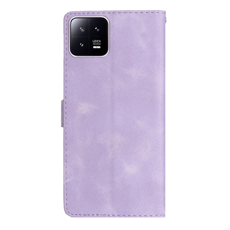 Para Xiaomi 13 Flor Mariposa Relieve Patrón Funda de Cuero para Teléfono (Púrpura)