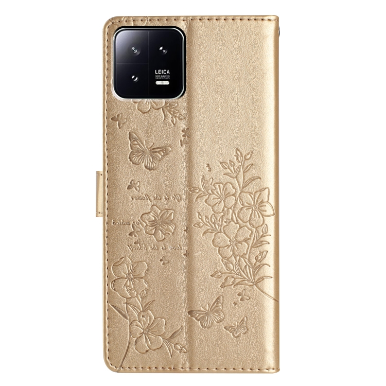 Para Xiaomi 13 Funda de Cuero para Teléfono con Mariposas y Flores (Dorado)