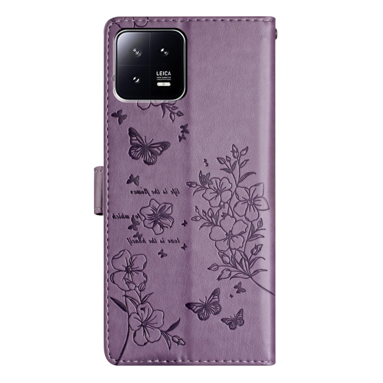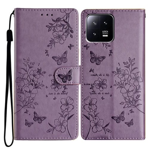 Para Xiaomi 13 Funda de Cuero para Teléfono con Mariposas y Flores (Púrpura)