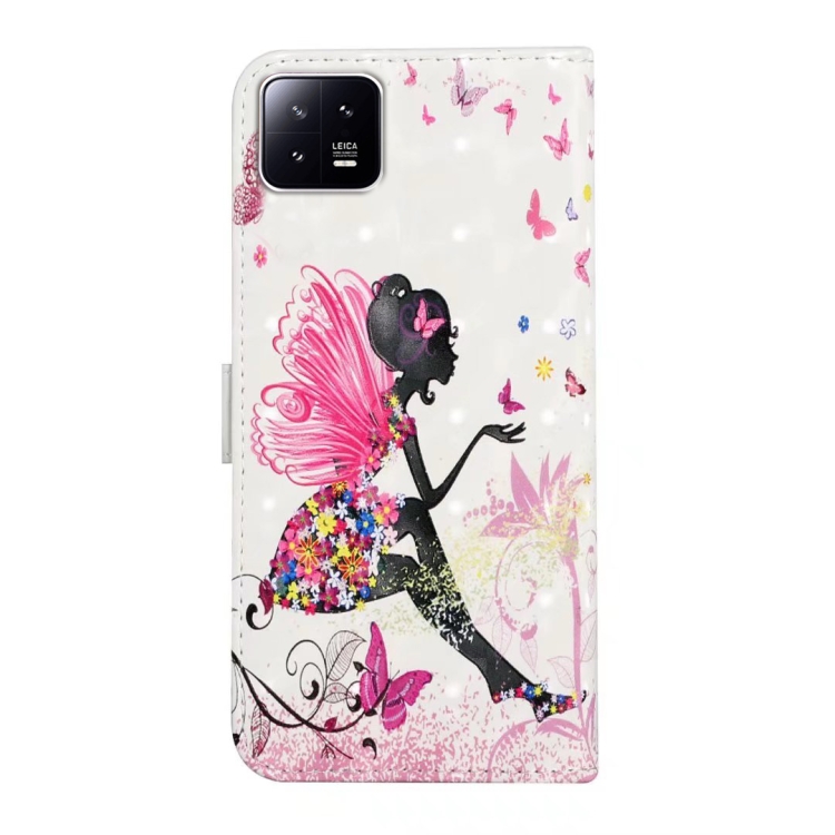 Para Xiaomi 13 Funda de Teléfono de Cuero con Dibujo 3D En Relieve al Óleo (Hada de Flores)