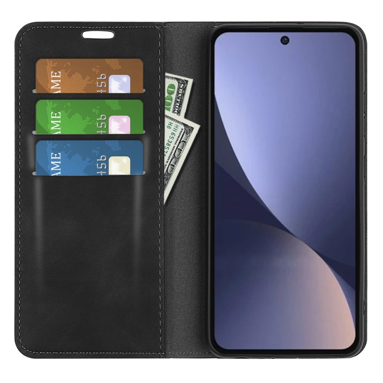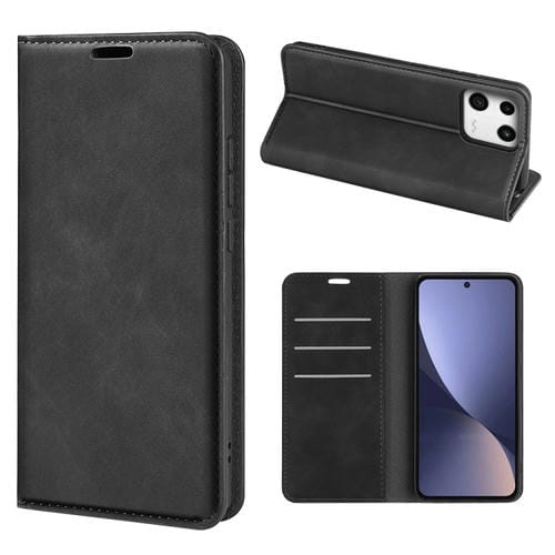 Para Xiaomi 13 Funda de Teléfono de Cuero con Succión Magnética de Piel Retro (Negro)