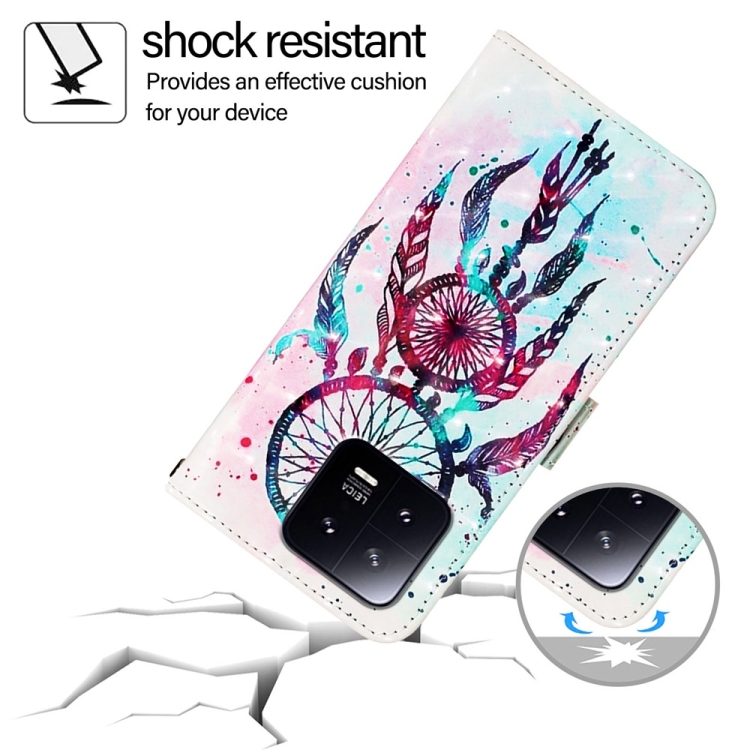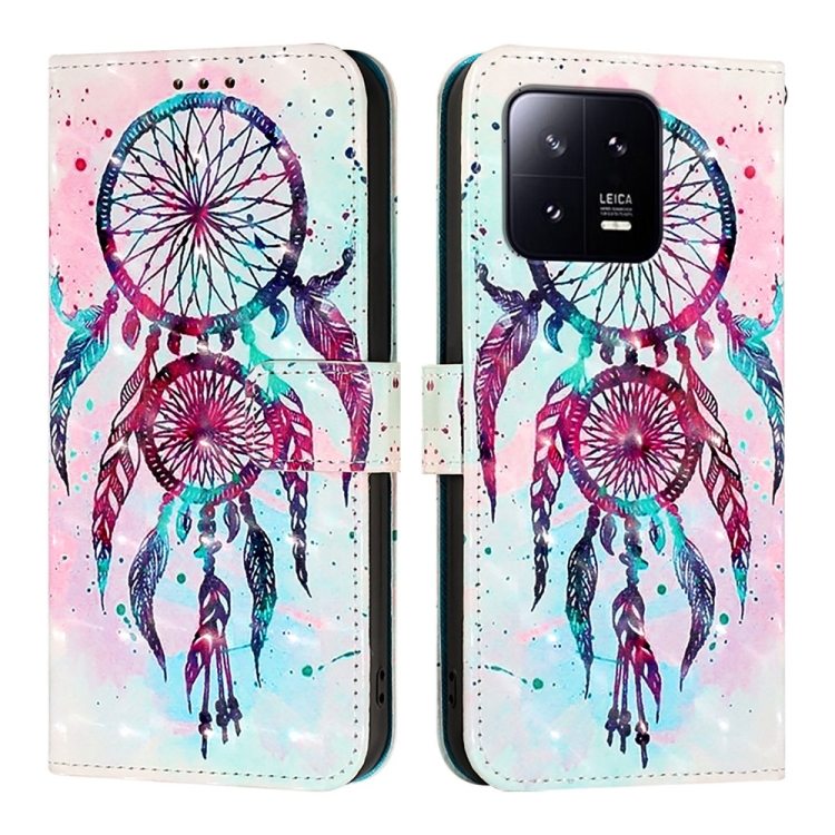 Para Xiaomi 13 Funda de Teléfono de Cuero con Tapa Horizontal con Pintura 3D (Campanas de Viento con Forma de Gota de Color)