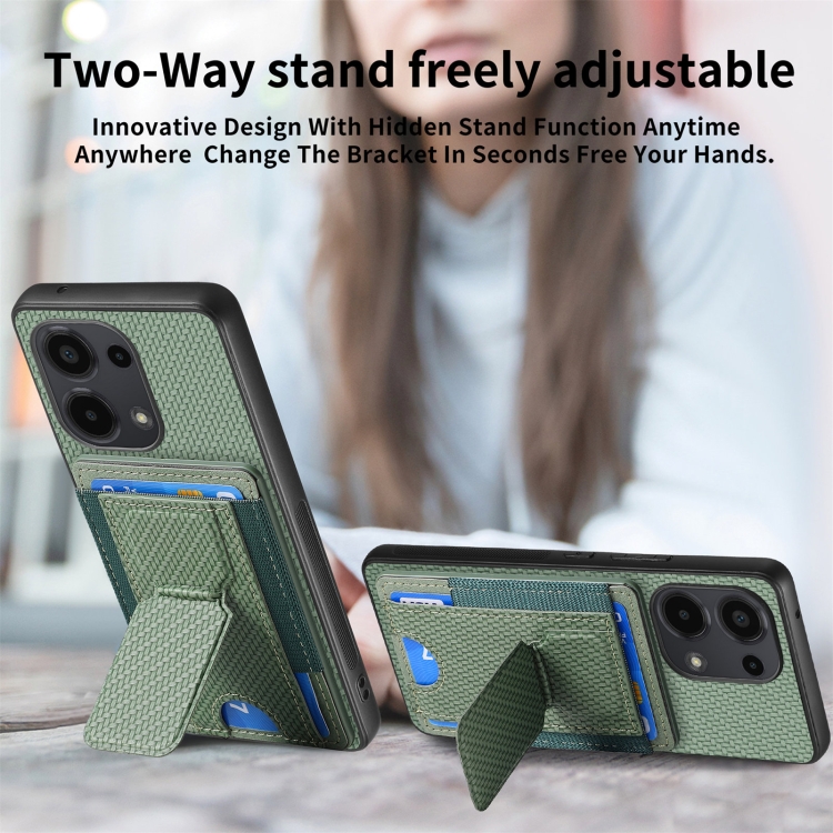Para Xiaomi 13 Funda Plegable para Teléfono con Bolsa para Tarjeta Elástica con Soporte Plegable de Fibra de Carbono (Verde)