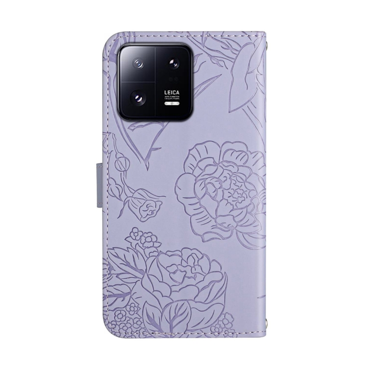 Para Xiaomi 13 Ht03 Skin Feel Butterfly Funda de Cuero con Tapa En Relieve para Teléfono (Púrpura)