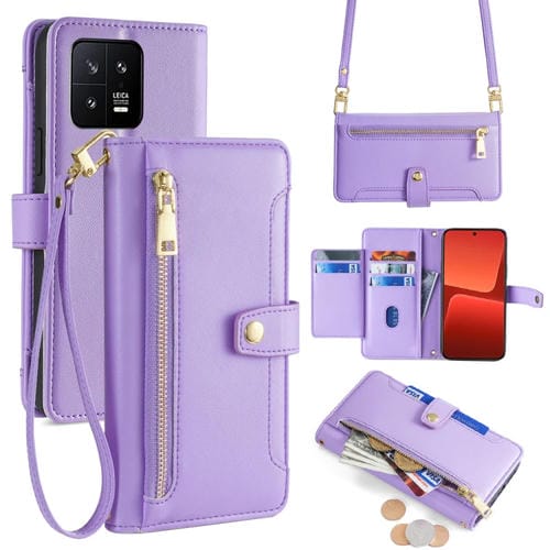 Para Xiaomi 13 Lite Funda de Cuero para Teléfono con Billetera con Cremallera y Cuerpo Cruzado con Textura de Oveja (Púrpura)