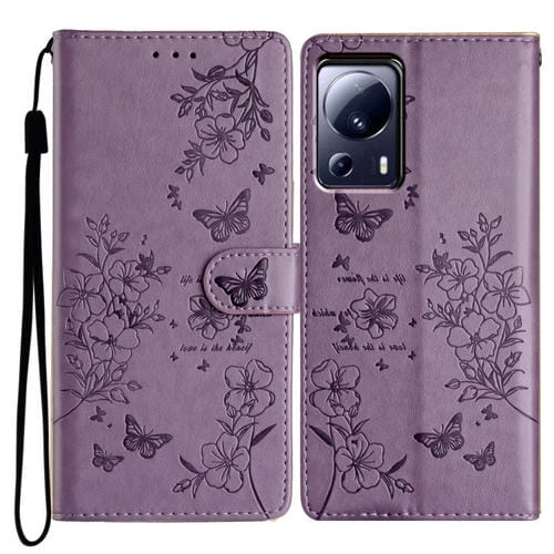 Para Xiaomi 13 Lite Funda de Cuero para Teléfono con Mariposas y Flores (Púrpura)