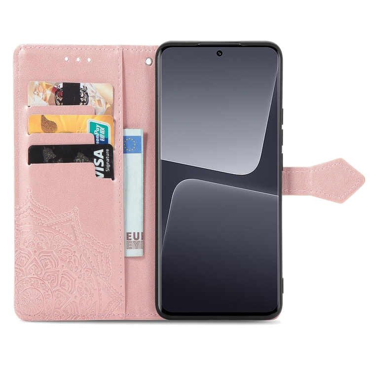 Para Xiaomi 13 Mandala Flower Funda de Cuero En Relieve para Teléfono (Oro Rosa)
