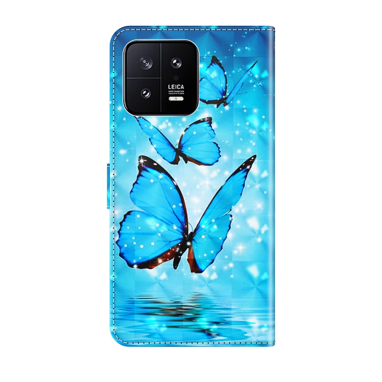 Para Xiaomi 13 Patrón de Pintura 3D Funda de Cuero con Tapa para Teléfono (Tres Mariposas)
