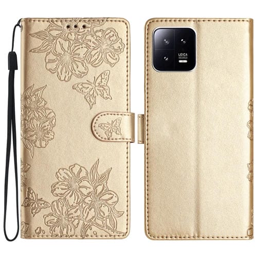 Para Xiaomi 13 Pro Cherry Blossom Butterfly Skin Feel Funda para Teléfono de Pu En Relieve (Oro)