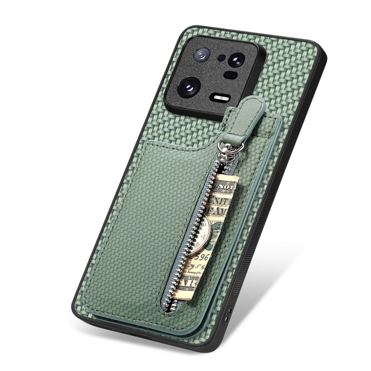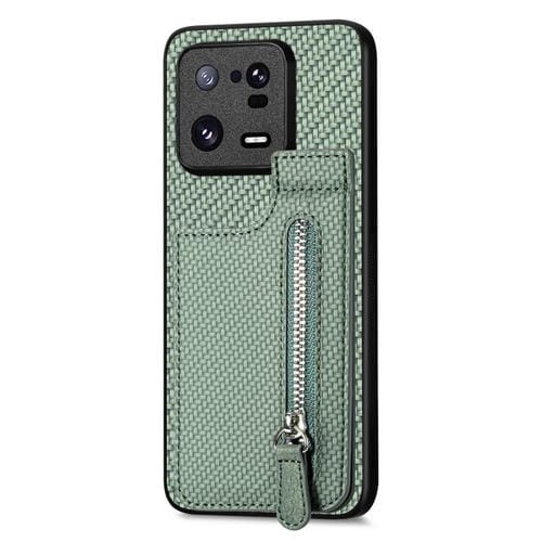 Para Xiaomi 13 Pro Estuche para Teléfono con Cremallera Vertical de Fibra de Carbono (Verde)