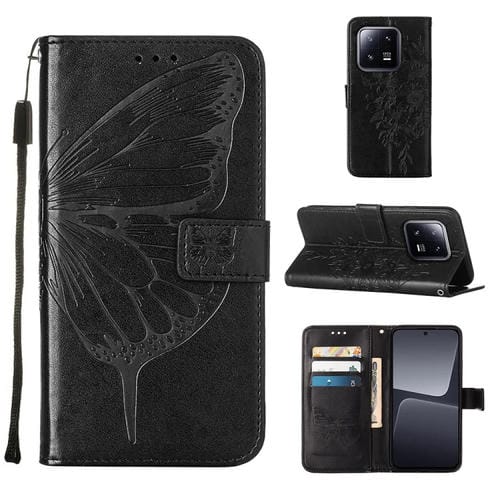 Para Xiaomi 13 Pro Estuche para Teléfono de Cuero con Mariposa En Relieve (Negro)