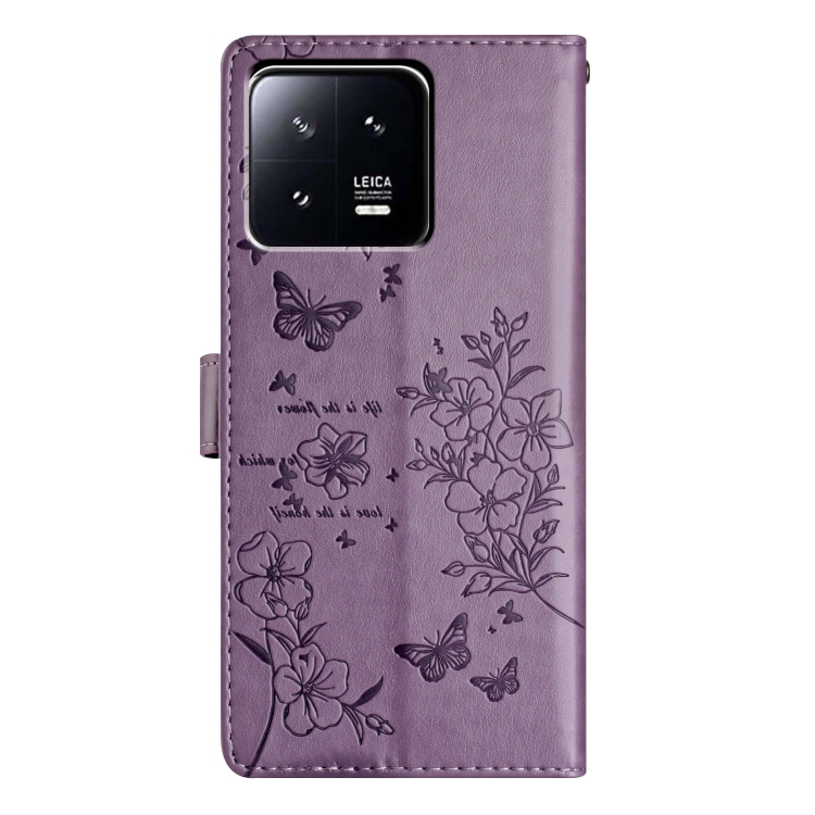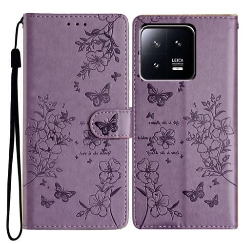 Para Xiaomi 13 Pro Funda de Cuero para Teléfono con Mariposas y Flores (Púrpura)