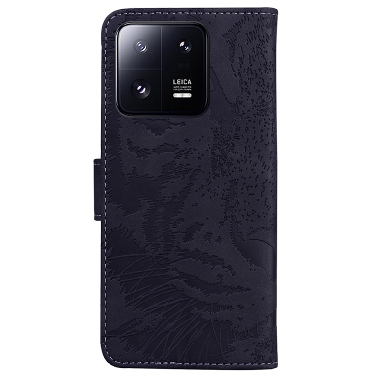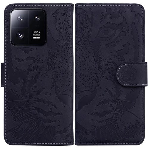 Para Xiaomi 13 Pro Funda de Teléfono de Cuero con Estampado de Tigre En Relieve (Negro)