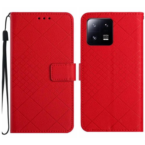 Para Xiaomi 13 Pro Funda de Teléfono de Cuero con Textura de Rejilla Rómbica (Rojo)