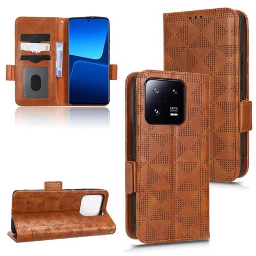 Para Xiaomi 13 Pro Funda de Teléfono de Cuero con Triángulo Simétrico (Marrón)