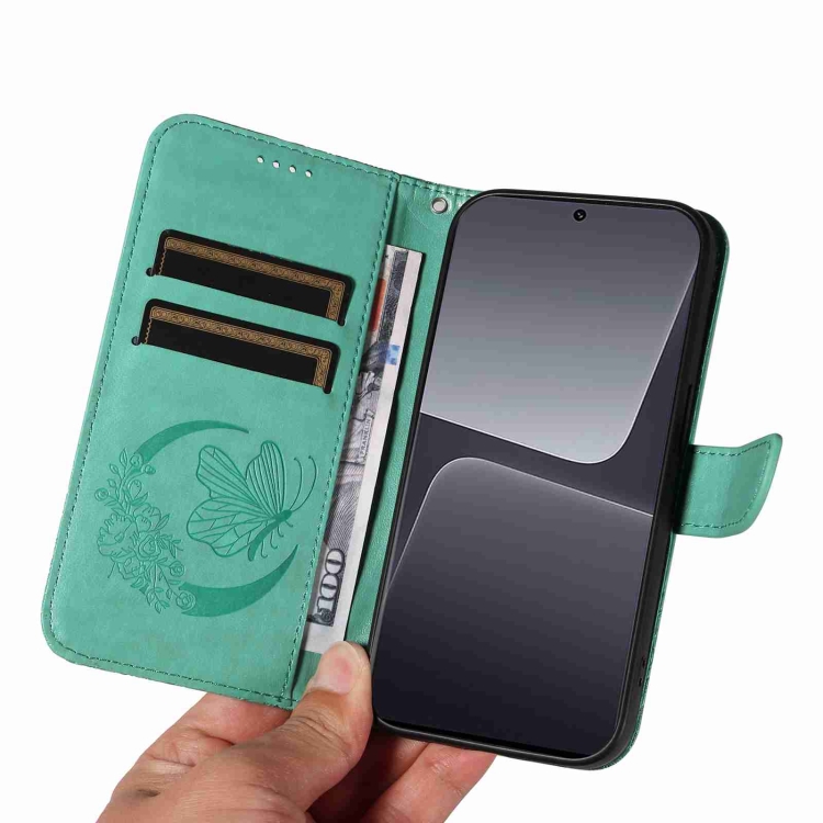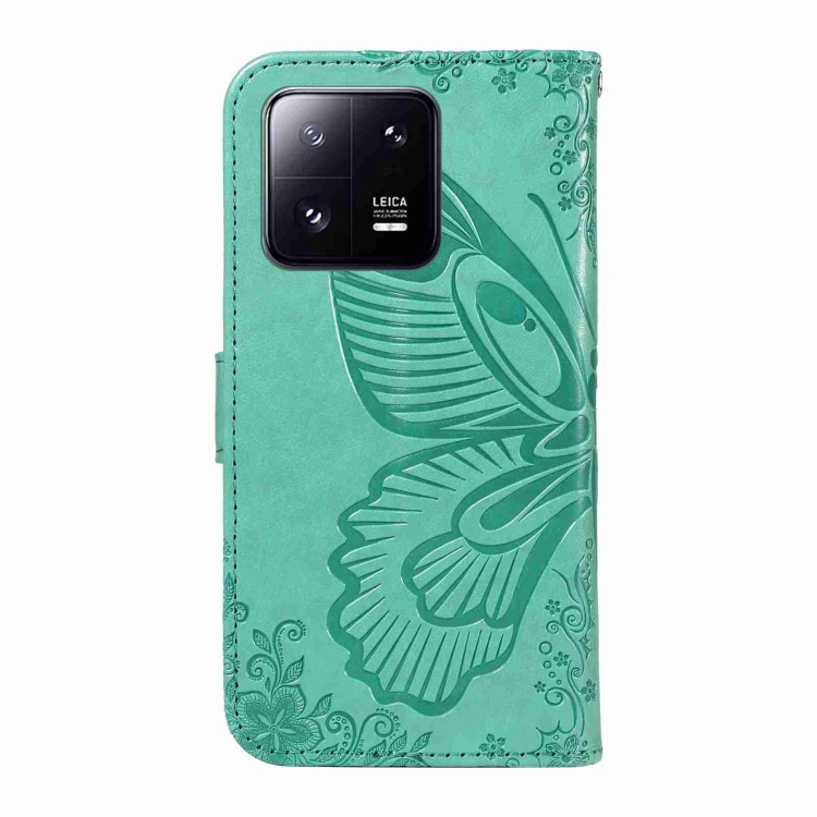 Para Xiaomi 13 Pro Swallowtail Butterfly Funda de Cuero para Teléfono En Relieve (Verde)