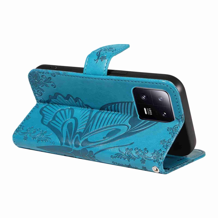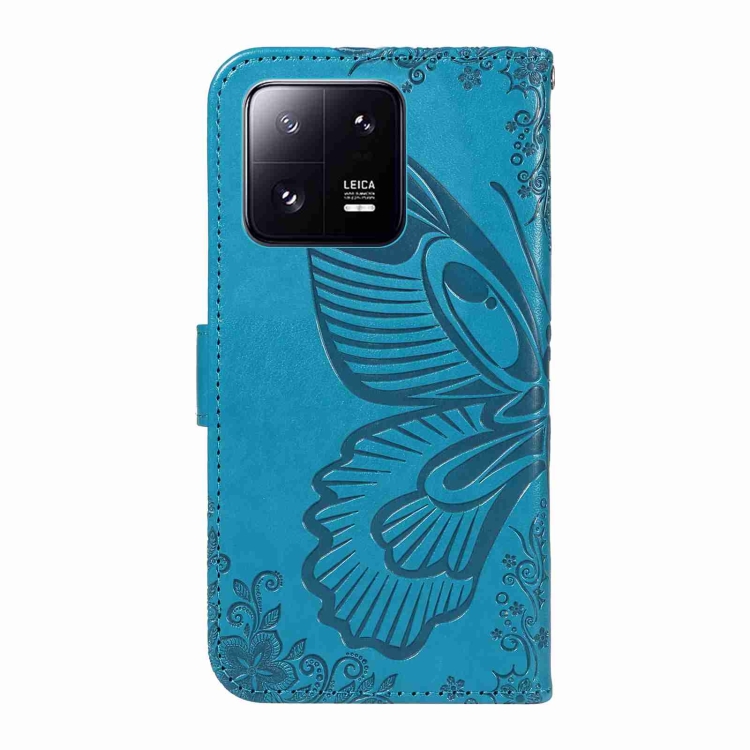 Para Xiaomi 13 Pro Swallowtail Butterfly Funda de Teléfono de Cuero En Relieve (Azul)