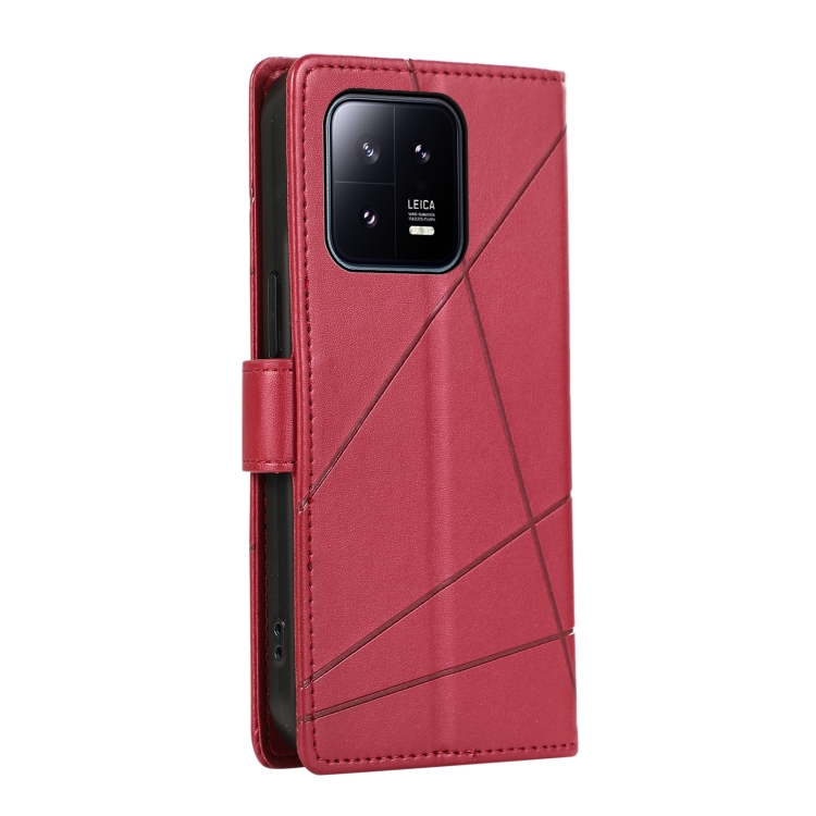 Para Xiaomi 13 Pu Funda de Teléfono con Línea En Relieve con Textura de Cuero Genuino (Rojo)