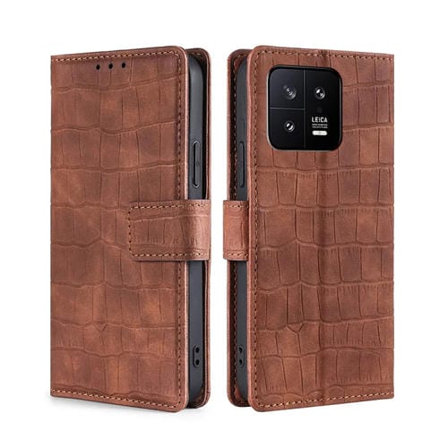 Para Xiaomi 13 Skin Feel Cocodrilo Cierre Magnético Funda de Cuero para Teléfono (Marrón)