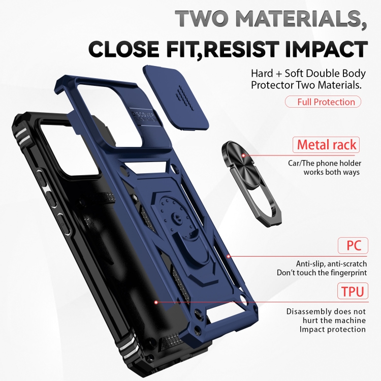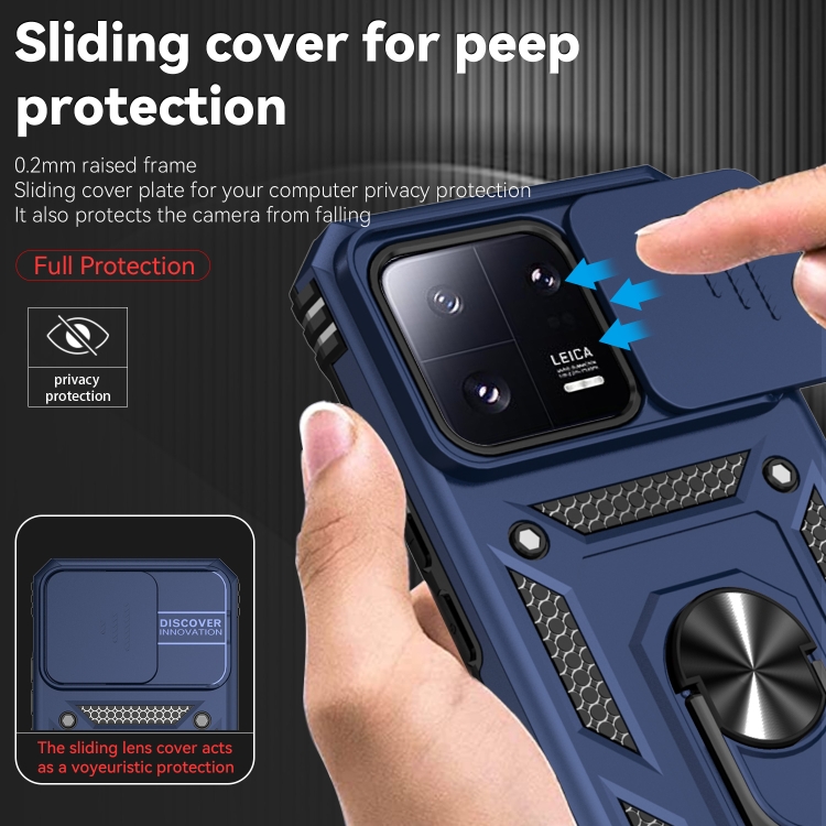 Para Xiaomi 13 Sliding Camshield Holder Phone Case (Azul)