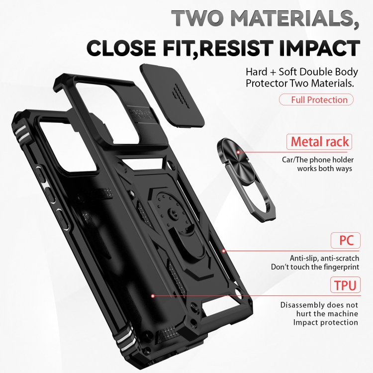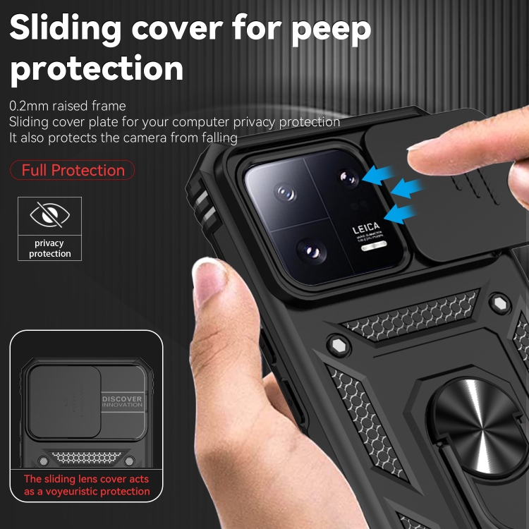 Para Xiaomi 13 Sliding Camshield Holder Phone Case (Negro)