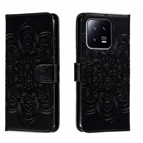 Para Xiaomi 13 Sun Mandala Patrón En Relieve Funda de Cuero para Teléfono (Negro)