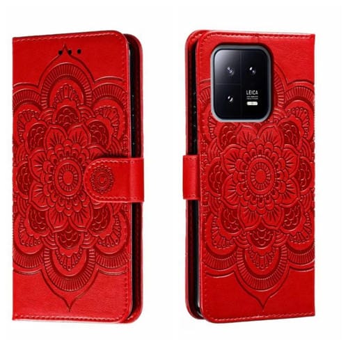 Para Xiaomi 13 Sun Mandala Patrón En Relieve Funda de Cuero para Teléfono (Rojo)