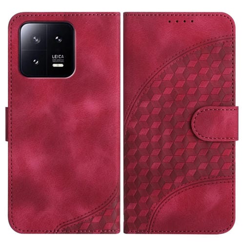 Para Xiaomi 13 Yx0060 Funda de Cuero para Teléfono con Relieve y Cabeza de Elefante con Cordón (Rojo Rosa)