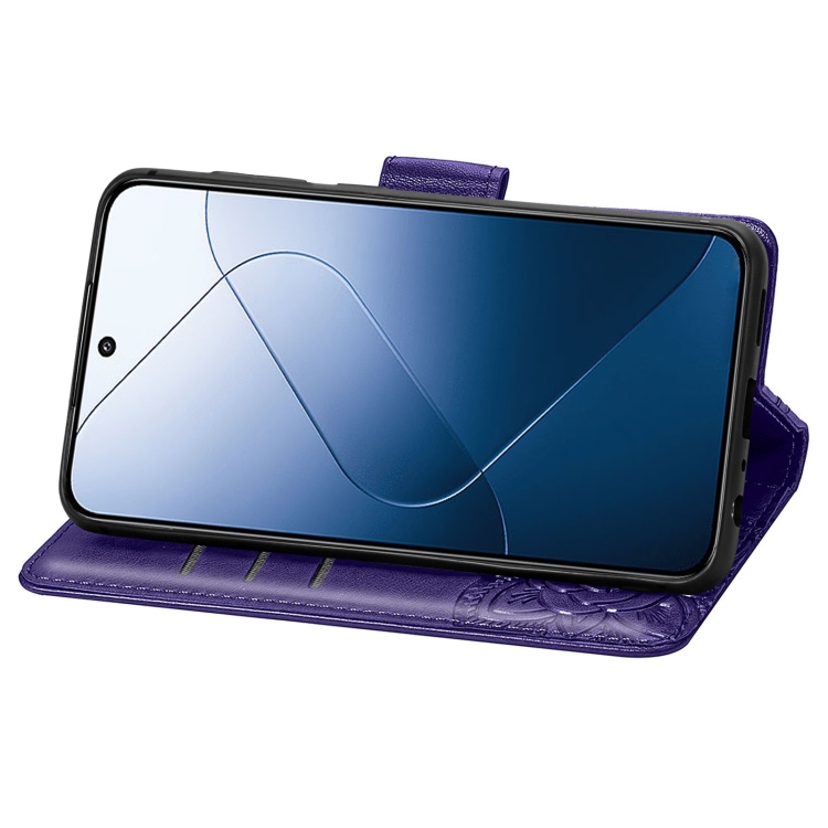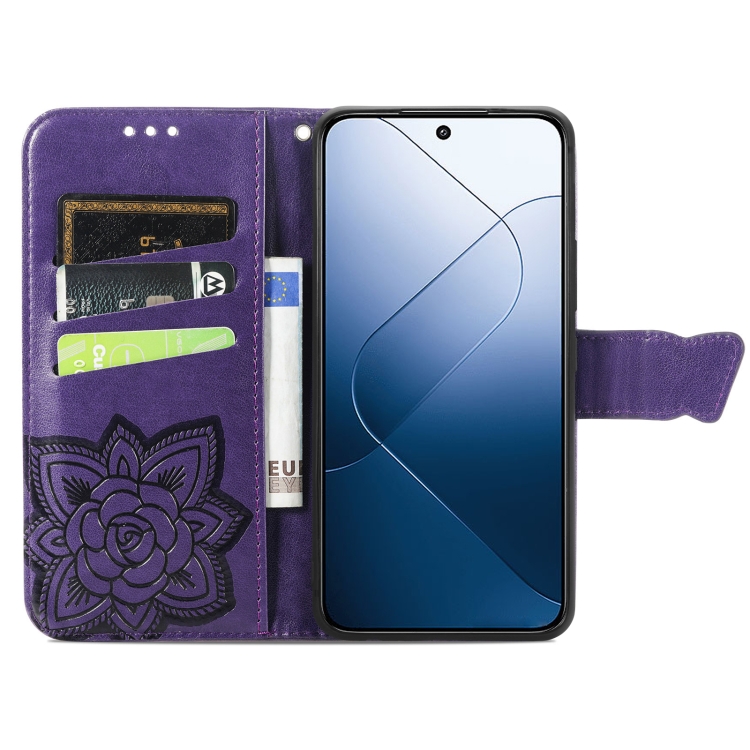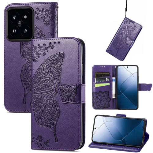 Para Xiaomi 14 Butterfly Love Flower Funda De Cuero En Relieve Para Teléfono (Púrpura Oscuro)
