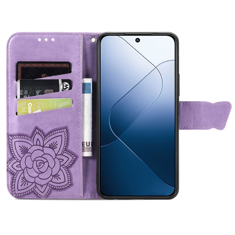 Para Xiaomi 14 Butterfly Love Flower Funda De Cuero Para Teléfono En Relieve (Púrpura)