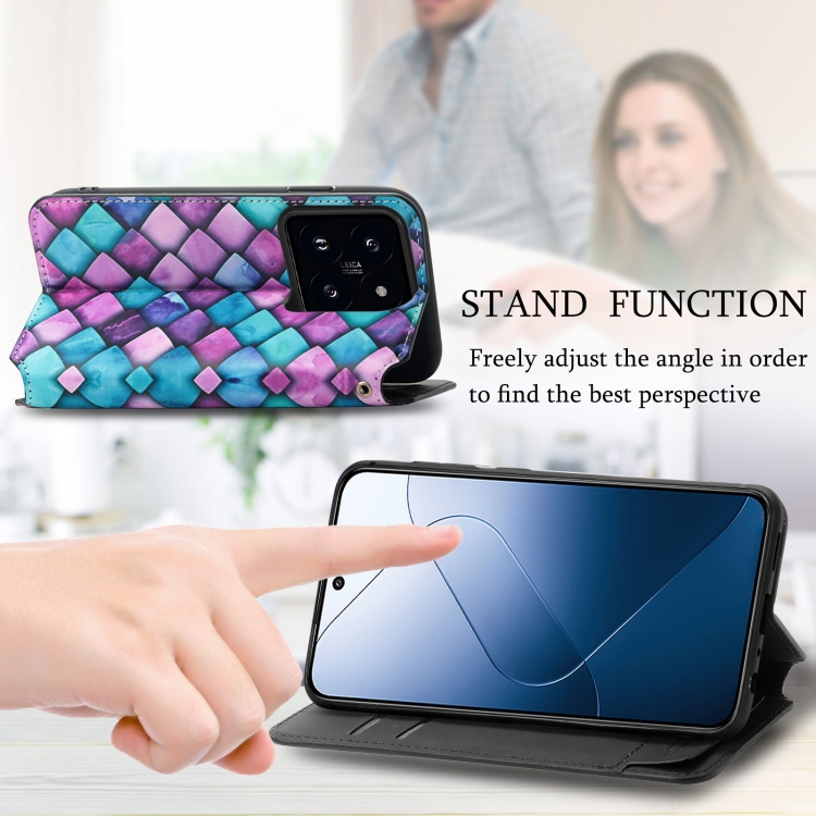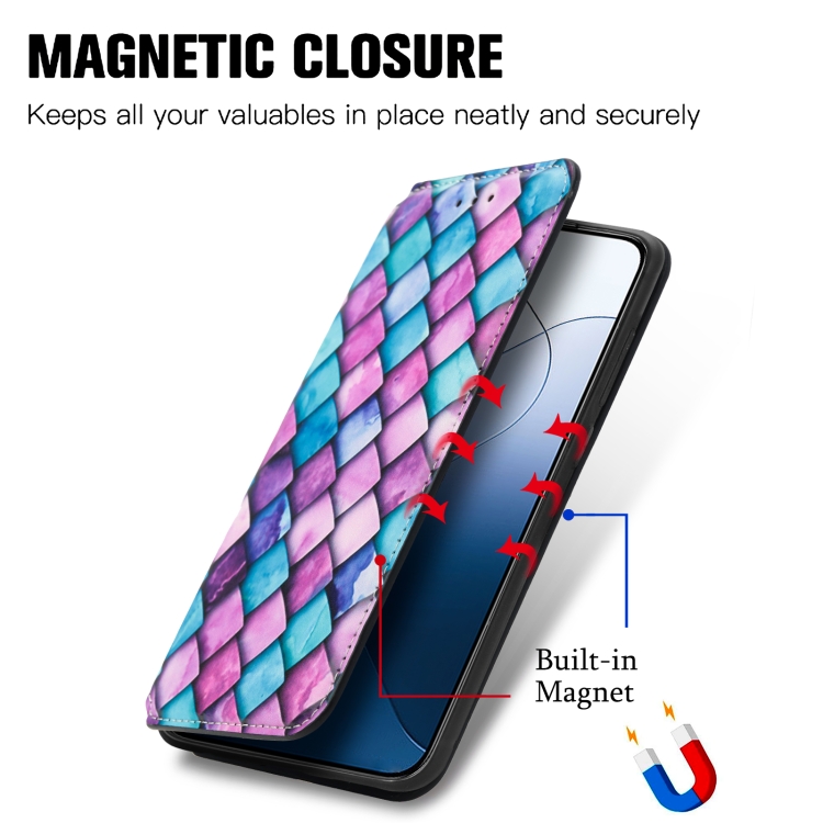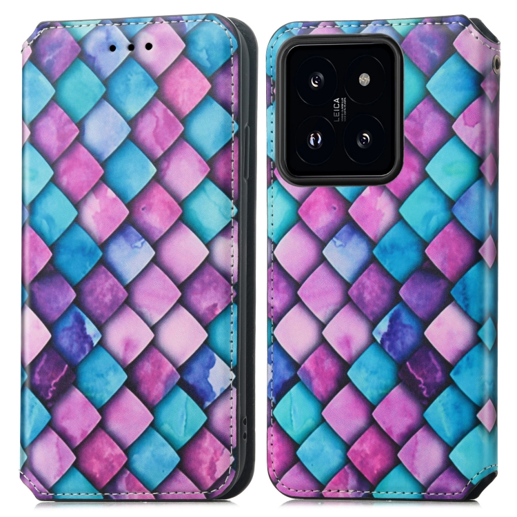 Para Xiaomi 14 Caseneo Funda De Cuero Magnética Colorida Para Teléfono (Escamas Moradas)