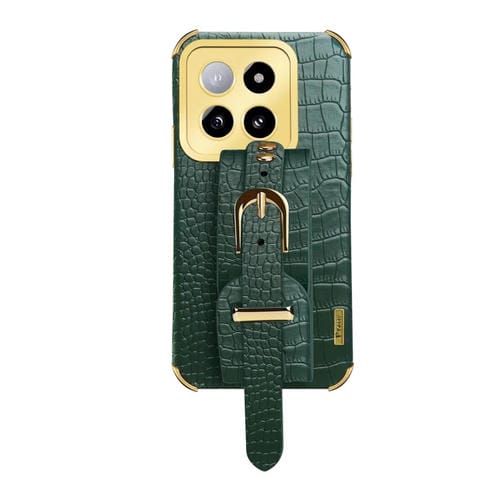 Para Xiaomi 14 Correa De Muñeca Electrochapada Funda Trasera De Cuero De Cocodrilo (Verde)